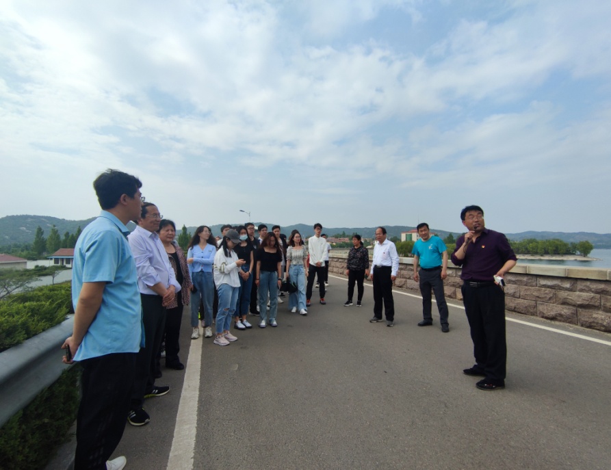 座谈会开始之前,在乔店水库高长杰主任和李树梁副主任的带领下山大师生参观了莱芜战役纪念馆,感受革命先烈的无私奉献精神,唤醒同学们攻坚克难的信心与勇气。随后深入水库上游,现场查看水库沿岸景观松种植基地、南宝台桥等地,实地考察调研影响水库水源地安全因素,在水库工程现场溢洪闸、大坝、供水站等处,工作人员详细介绍了水库建成历史及运行管理等情况,并和山大师生进行技术交流。