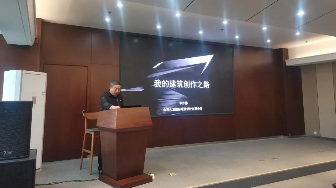 于兴隆山校区实验楼召开创作之路学术讲座。讲座由山东大卫国际建筑设计公司董事长兼总设计师申作伟担任主讲,工口实验室