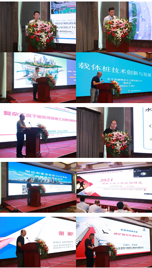 来自中铁十四局集团有限公司、大成科创基础工程有限公司、徐州工程机械集团、北京波森特岩土工程有限公司、广州金土岩土工程技术有限公司、中联重科股份有限公司、上海开普天岩土科技集团有限公司胡晓虎、建华建材集团、山东省机械施工有限公司、山东建科特种建筑工程技术中心有限公司、山东倍特力地基工程技术有限公司的十一位专家就深基础和地下工程理论、设计、装备、技术等各个方面做了精彩报告。