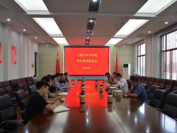 在水利楼第一会议室召开青年教师座谈会。学院党委副书记、院长张庆松,副院长韩勃,党委副书记辛帅和力学系主任王少伟出席座谈会,与10位青年教师面对面交流,听取青年教师对学院管理服务保障以及高质量发展的意见建议。