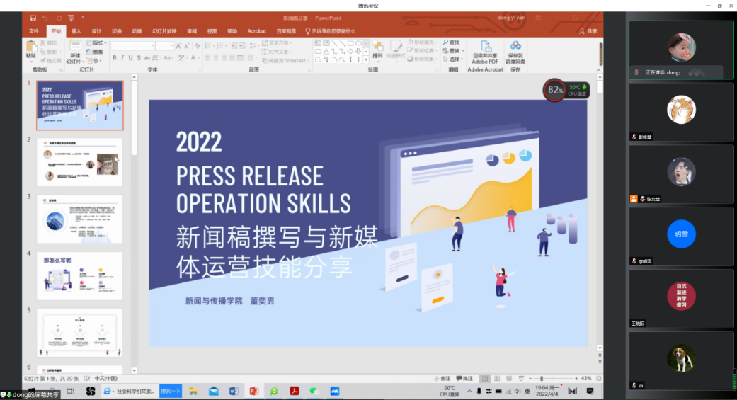 举办新闻技巧及摄影分享会。受疫情影响,本次活动采用腾讯会议线上分享的形式,邀请到了新闻与传播学院的董奕男和工口实验室