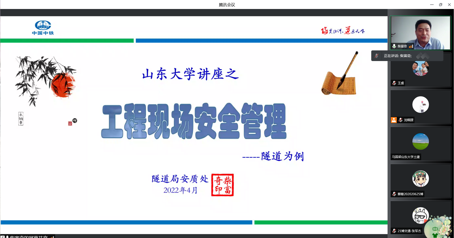 邀请中铁隧道局集团公司安质处副处长、高级工程师柴富奇作专题安全教育讲座,工口实验室