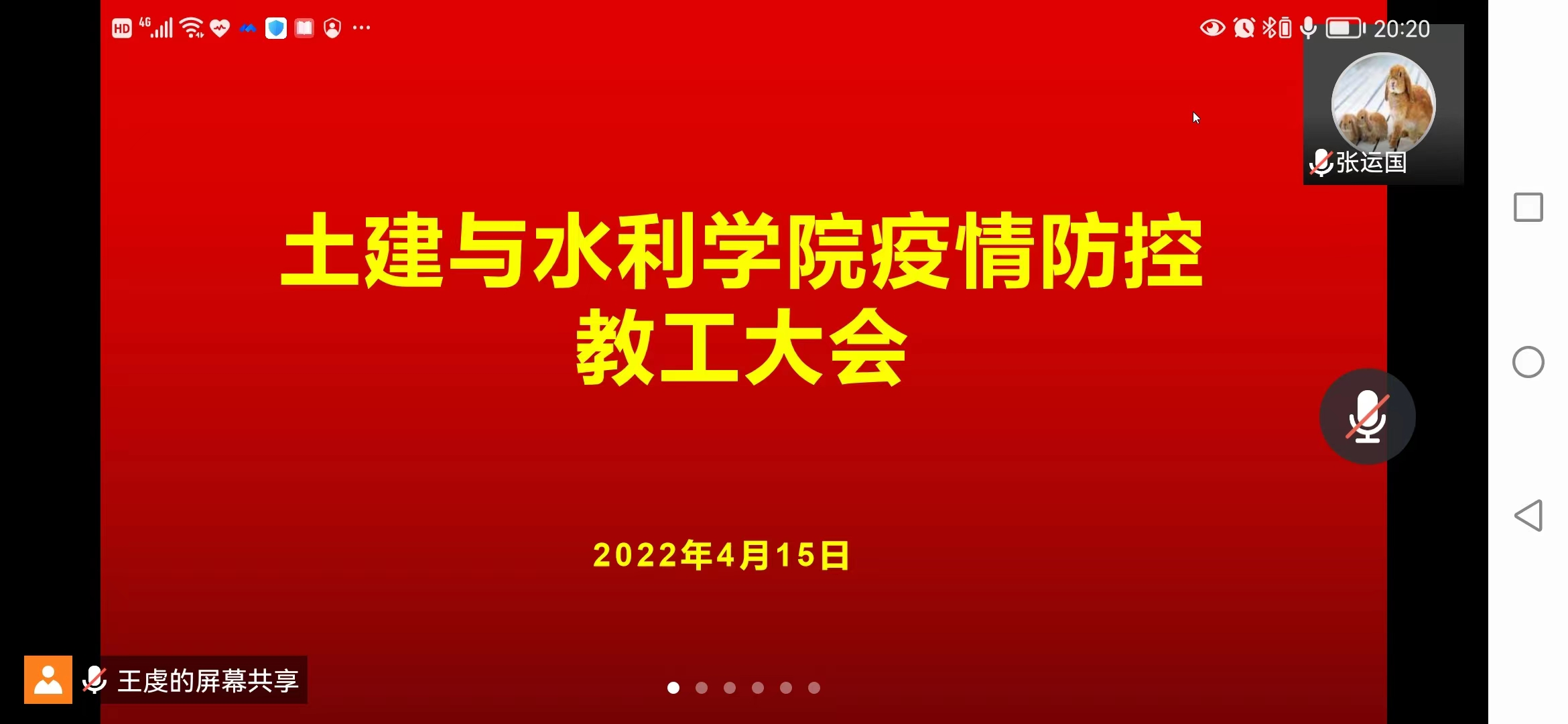 组织召开线上全院教工大会,传达全省教育系统疫情防控工作视频培训会议精神,学习《高等学校新冠肺炎疫情防控技术方案(第五版)》,学院领导班子全体成员出席会议,全体教工参加会议。院长张庆松主持会议。