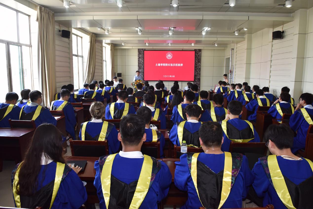 院长张庆松,党委书记刘斌,副院长张强勇、韩勃,党委副书记辛帅,组织员、工会主席范方,院学位委员会委员,各学科教师代表以及2022届全体毕业生参加典礼。