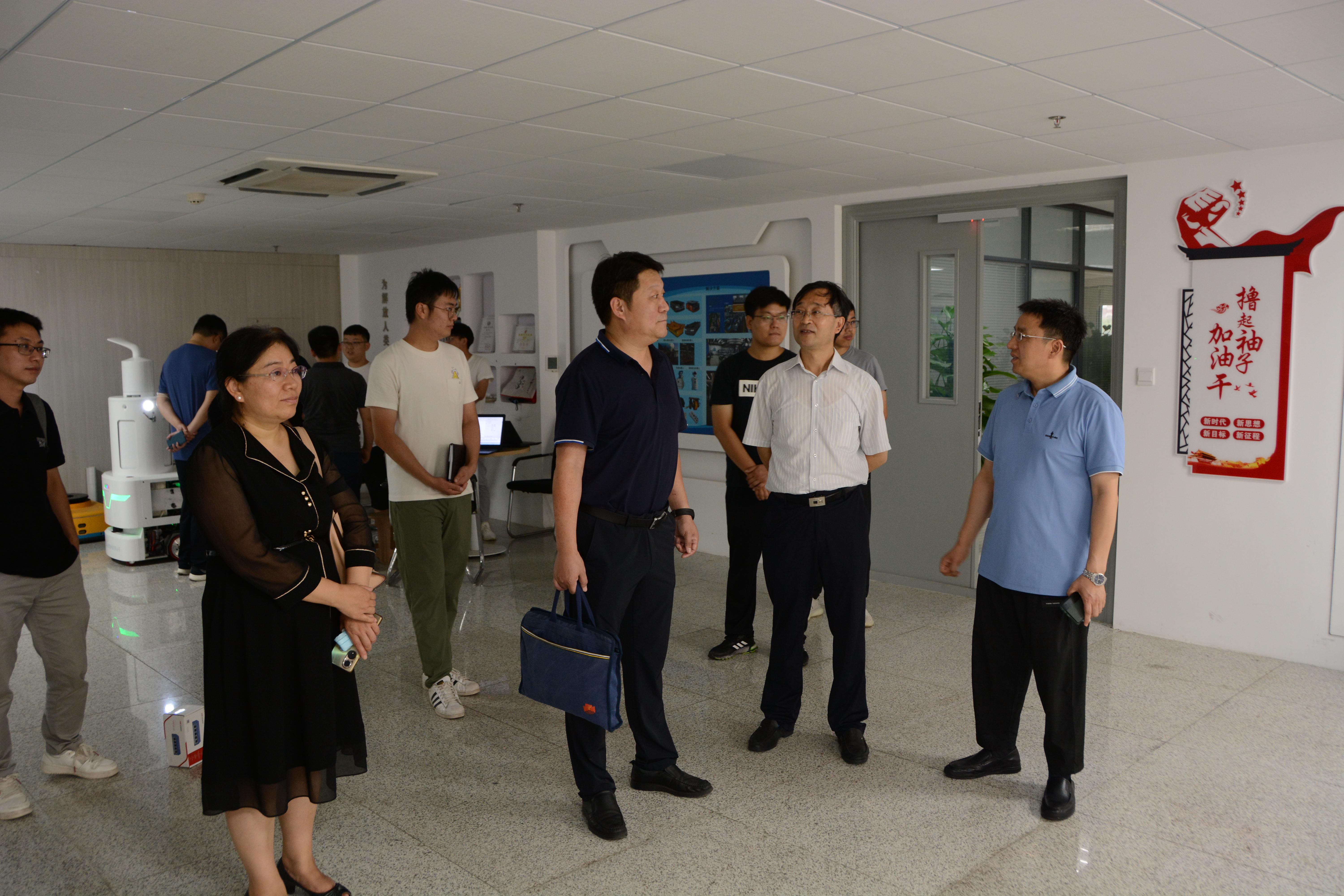 7月22日下午,山东省住房和城乡建设厅节能科技处二级调研员冯睿、科长张亚可,山东省住房和城乡建设发展研究院副院长张少红、科研管理副主任刘启明一行4人来到山大智能建造中心开展工作调研。