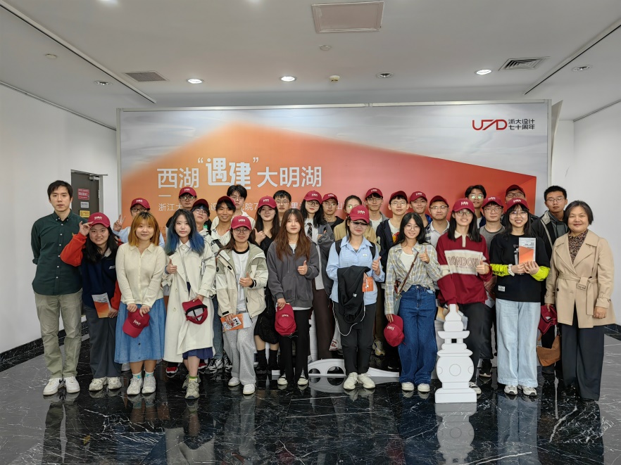 建筑学系主任宁荍、专业教师陈烨组织带领建筑学专业一至三年级学生前往济南市美术馆,参观“西湖‘遇建’大明湖——浙江大学建筑设计研究院70周年成果巡回展(山东站)”。