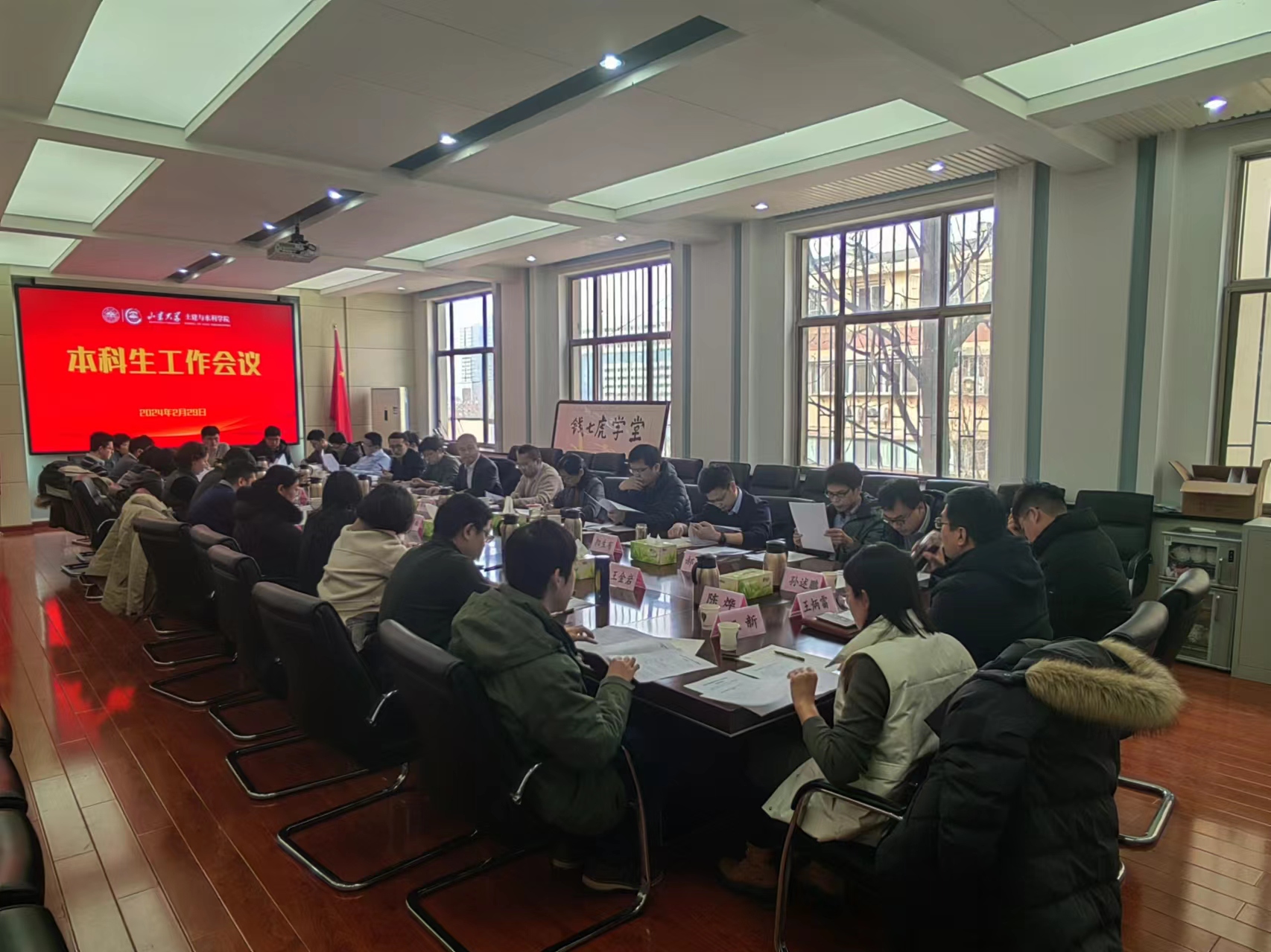 召开2024年度本科生工作会议。学院党委书记刘斌出席会议并讲话,副院长张强勇、王培军、王少伟,党委副书记辛帅参加会议,党委副书记王超主持会议。