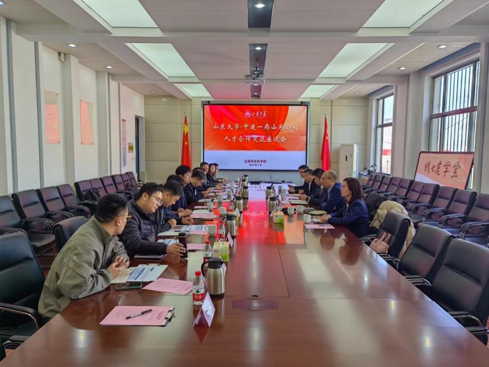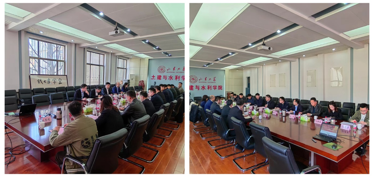 王培军首先对中建一局山东公司一行的到来表示热烈欢迎,对中建一局山东公司长期以来对学院关心支持表示衷心感谢,并从本科生招生专业、招生规模、特色培养、学生就业等方面介绍了学院。希望下一步双方围绕科研、人才培养等领域继续深化合作,共同为土木行业转型发展及校企内涵式高质量发展作出贡献。郭春生就学校实习、实践、校企合作人才培养创新模式做了分享,希望校企需求匹配深度融合。王楠介绍了中建一局山东公司的总体情况,着重介绍了公司的科研、人才需求等,希望校企在科研、实习实践、人才培养等方面有更多合作。公司科技部副经理于佳生具体介绍了公司的科研现状。王超也就学院学生工作进行了交流。