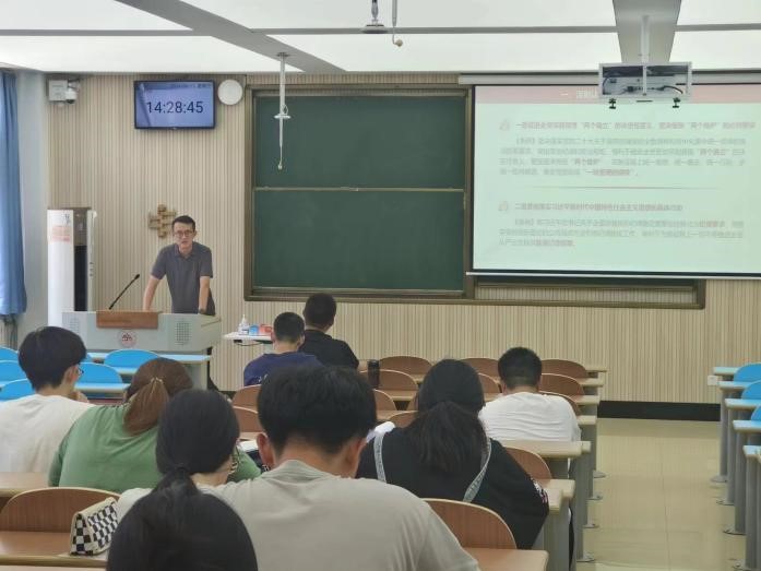 在毕业生党员和新党员主题研讨环节。毕业生党员以“勇做奋进者、争当开拓者、甘为奉献者”为主题,汇报了个人发展规划、思想认知等。新发展的党员以“如何端正入党动机,加强党纪学习教育,争做合格党员”为主题,结合自身工作学习实际进行分享发言。