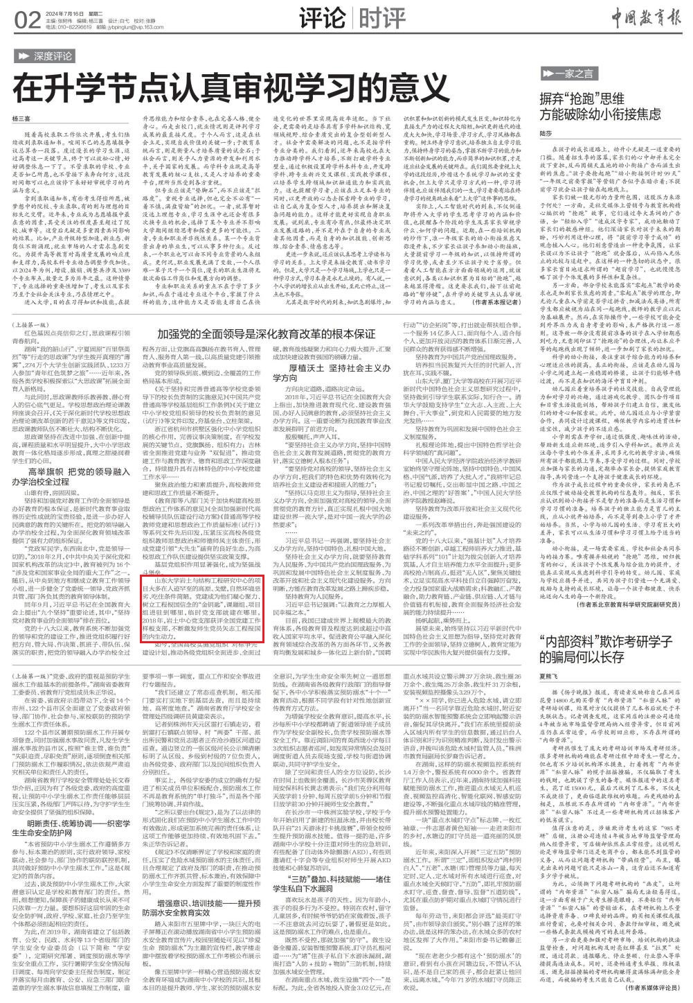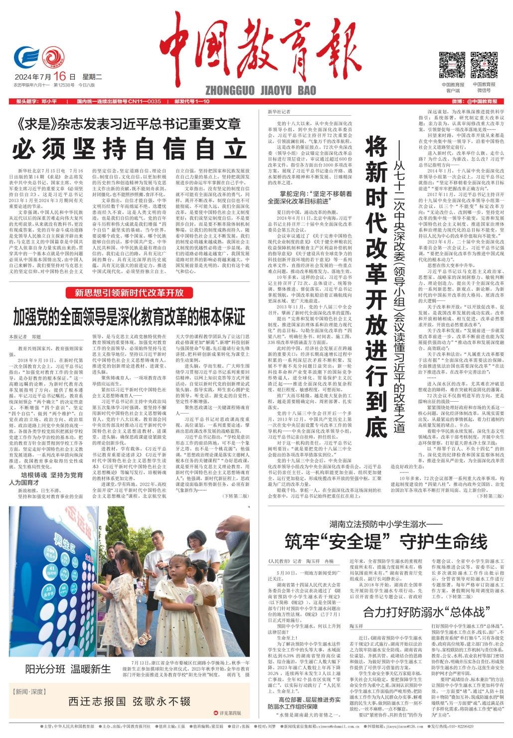 7月16日,《中国教育报》第1版、第2版发布文章《加强党的全面领导是深化教育改革的根本保障》,文章中报道工口实验室
