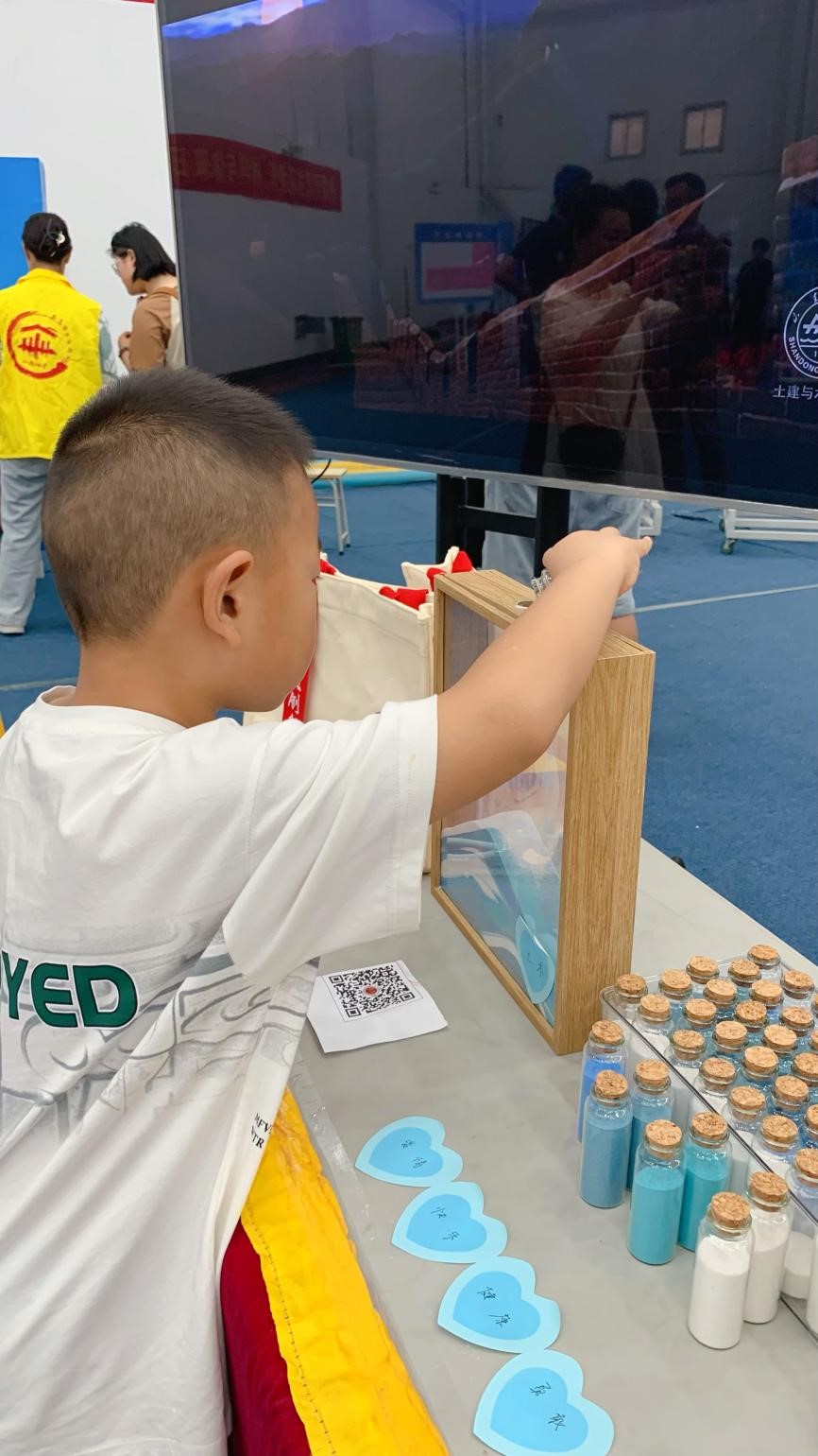 “担当、勤奋、创造、团队、分享”学院文化的认同感与归属感、许下对自己未来大学生活的美好祝愿,学院今年设置新生许愿处,每一位前来报到的2024级新生可以在此倒入象征美好品质的流沙、许下自己的心愿。