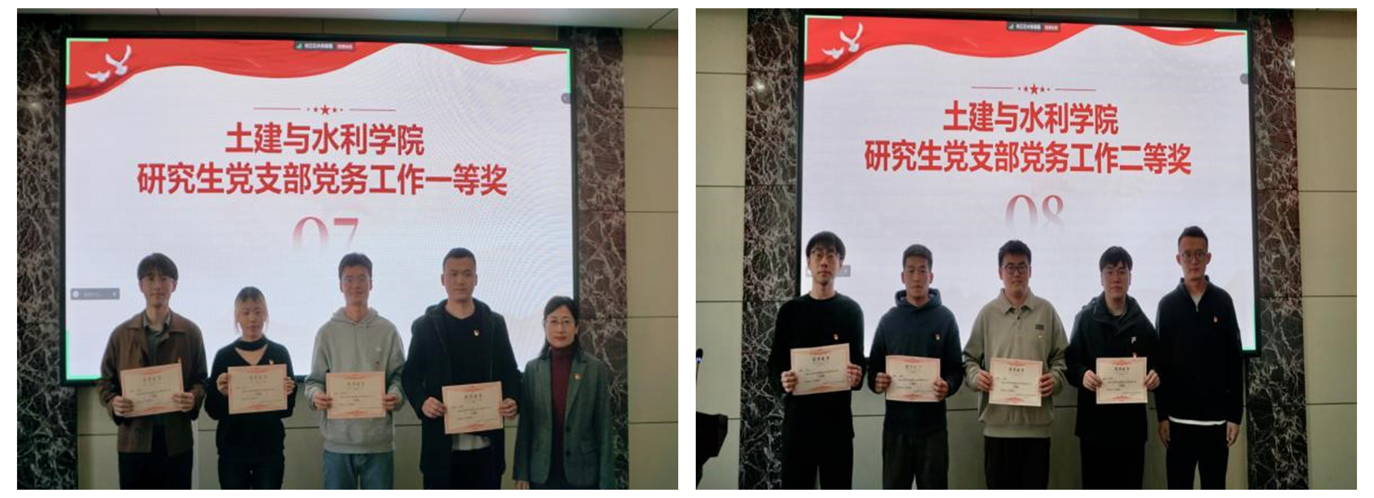 研究生党务工作一等奖、二等奖的党支部颁奖。
