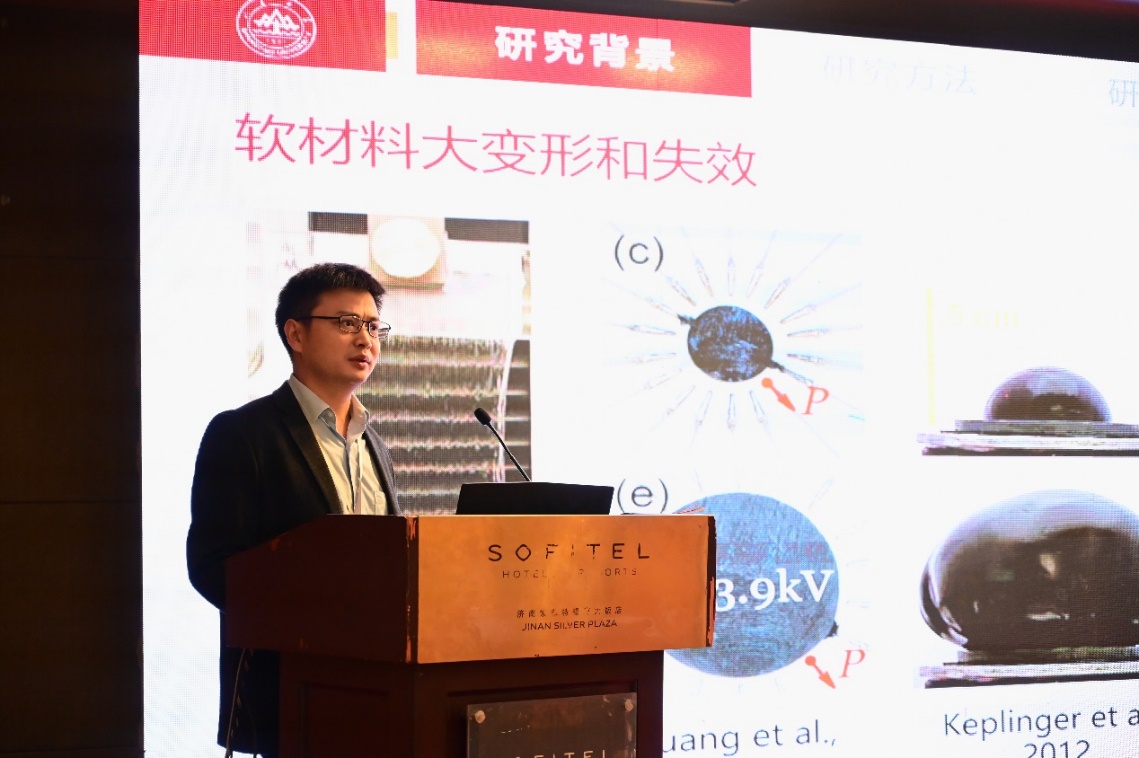 刘建林教授展示了课题组近年来力图实现从固体力学到工程力学(行业力学)研究转变的几个实例,以求集思广益,激发思考。朱文鹏教授的报告题目是“基于电形成法的巨型脂质体生长的力学机制研究和尺寸调控应用”,介绍了巨型脂质体的特征、应用和报告人近些年在巨型脂质体方面取得的研究进展。邵丽华教授的报告题目为“多孔材料的力电耦合性能研究”,介绍了微结构材料在多场耦合作用下展现出的优异的力电耦合性能。阳生有教授的报告题目为“软材料多物理场耦合下的大变形理论和稳定性研究”,介绍了非线性理论用以描述软材料的非线性响应,如何构建多场耦合大变形下的应力平衡方程组、麦克斯韦方程组等内容。