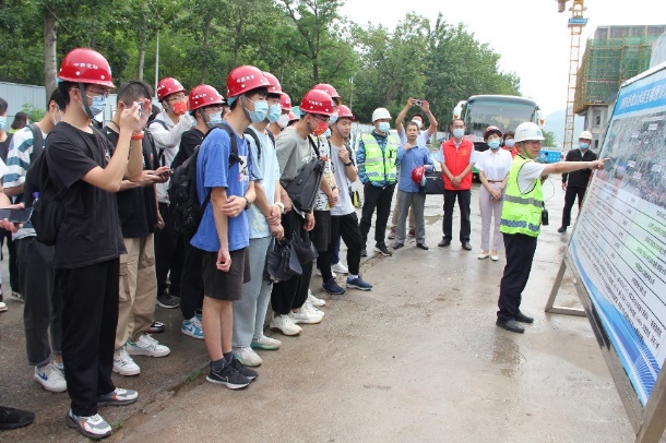 师生参观了卧虎山水库与锦绣川水库两库连通工程的一号泵站施工现场,在听取工程技术人员的讲解后,同学们就两库连通工程和工程施工问题向项目负责人进行交流。随后全体师生参观了卧虎山溢洪闸与水库大坝、溢洪闸,对水利工程基本结构有了初步的认识。