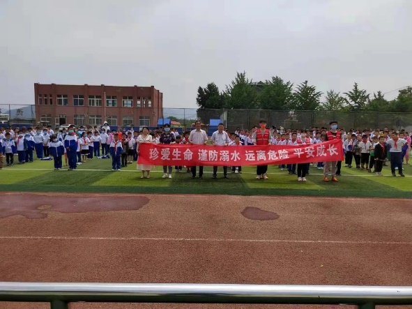师生与卧虎山水库服务处党员干部开展了社区学校防溺水宣传和保护水源地活动。2021级学生马骏凯,杨思莹与张灵浩与水库安全科工作人员一起到仲宫街道穆家小学进行“珍爱生命、谨防溺水、远离危险、平安成长”的防溺水宣传活动,其他师生与服务处党员干部们开展了保护水源地志愿服务捡拾垃圾活动,通过系列实践活动增强了同学们参与公益活动,服务社会的意识。
