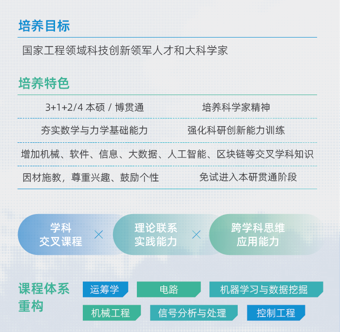 拔尖创新人才“六堂一院”体系的重要构成,旨在培养工科类拔尖创新科技领军人才,弘扬钱七虎院士的科学家精神和崇高品格,培养具有家国情怀、精英素养、全球视野的国家工程领域科技创新领军人才和大科学家。