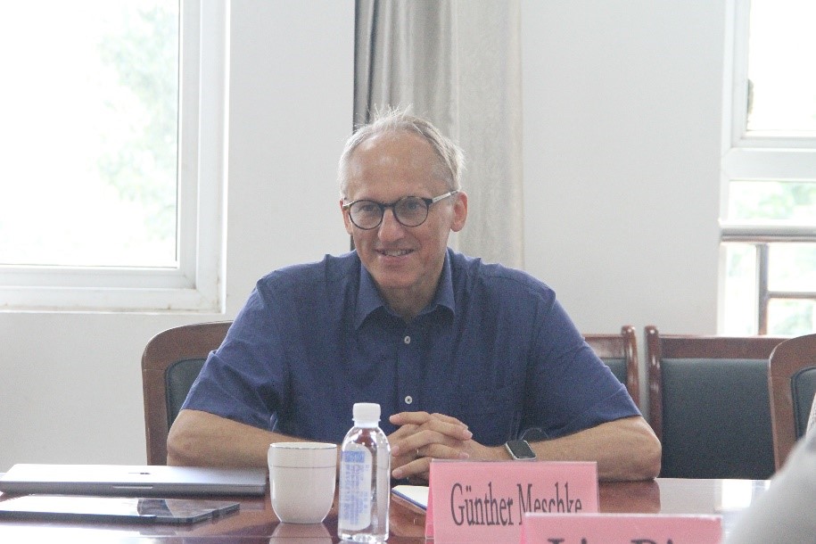 在水射流/激光辅助高效破岩方面的进展。在已有合作基础上,双方进一步深入探讨了岩体力学和数值模拟等关切点,并就Günther Meschke院士在新的聘期内如何深化合作、联合培养学生等达成共识。会议最后举行了Günther Meschke院士工口实验室