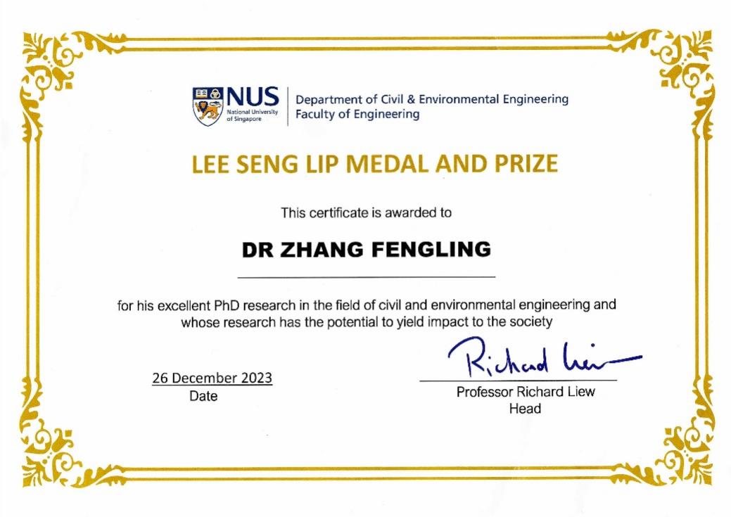 Lee Seng Lip由新加坡国立大学颁发给即将毕业或近期毕业的土木工程/环境工程博士生,以表彰他们在该领域所取得的优秀研究成果。该奖项是新加坡国立大学土木与环境工程系授予博士毕业生的最高奖项。获奖者在研究领域的研究成果对经济发展、人类社会进步具有意义。