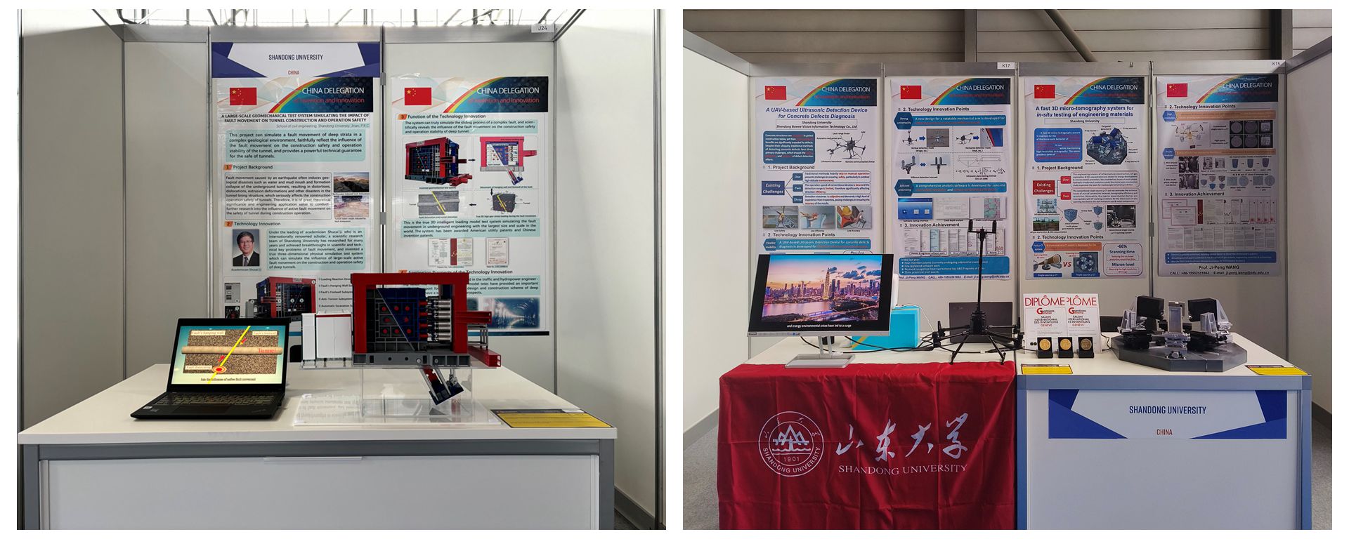 王冀鹏教授团队的《基于无人机的混凝土缺陷超声检测装备》项目荣获此次展会“金奖”。该成果围绕大尺度混凝土基础设施结构快速无损病害检测的需求,发明了一种机载微型远程混凝土超声波检测设备,并开发了配套的混凝土裂缝综合分析软件,提出了实现混凝土基础设施结构病害快速智慧检测的新技术方案,可有效推动混凝土结构病害检测智慧化水平提升,检测工作安全性、时效性和准确性得到有效提升。