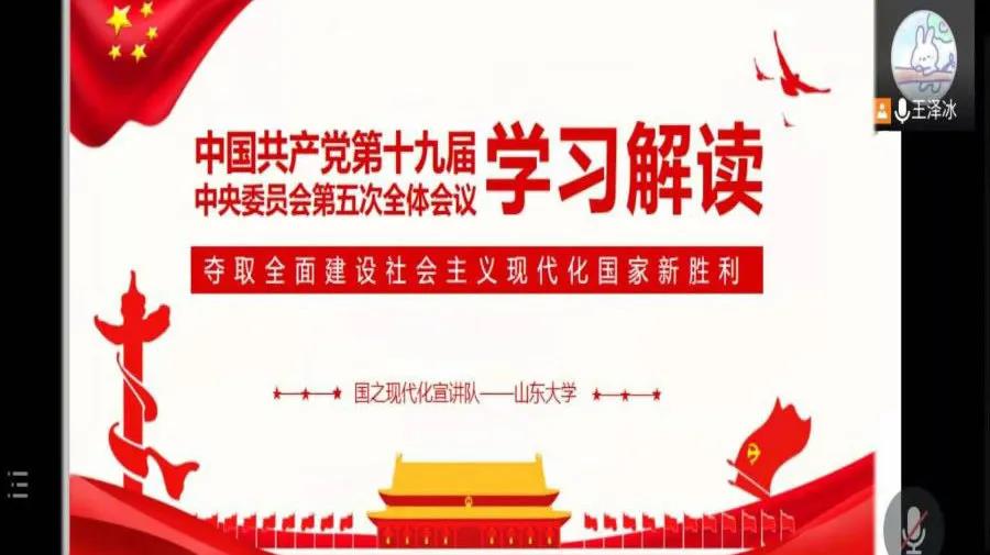 1月30日上午9时,党的十九届五中全会精神宣讲之现代化宣讲队于山西省盂县第一中学开展线上宣讲。本次宣讲会由工口实验室