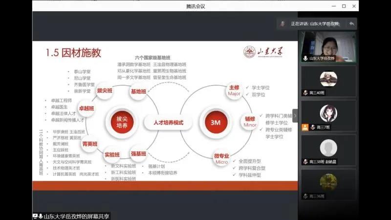 的优势特点、专业设置、招生情况与预想的同学们的疑惑结合起来。同学们提出了“如何看待自己现在的分数和排名,能触摸到山大的排名是多少”、“在高考后进行专业选择时要考虑什么”、“在山大能得到什么层次的栽培和资源”、“在山大,真实的大学生活是怎样的”等问题,岳孜烨结合自己的亲身经历和感受,对这些问题一一作了回答。考虑到相当一部分高中生存在对大学过分的幻想、对专业的不认识,对高校和个人发展的不理解等问题,所以岳孜烨把这几个方面作为宣讲的重点,旨在帮助他们解决实际的困惑和难题。