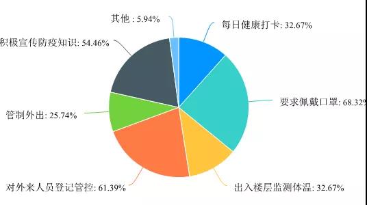 问卷调查显示,在日常生活中九成以上的民众外出会佩戴口罩,不佩戴口罩的人在回收的问卷中不到4%,可见大多数人在日常生活中没有放松对疫情的防范。在社区开展的防疫工作方面,有60%左右的社区会积极宣传防疫知识,对外来人员登记管控,并要求其佩戴口罩,还有30%左右的社区要求每日健康打卡,在出入楼层监测体温,管制外出。可见,在整体上,社区对于疫情的防范意识较高,并未因疫情有所好转而松懈防疫工作。