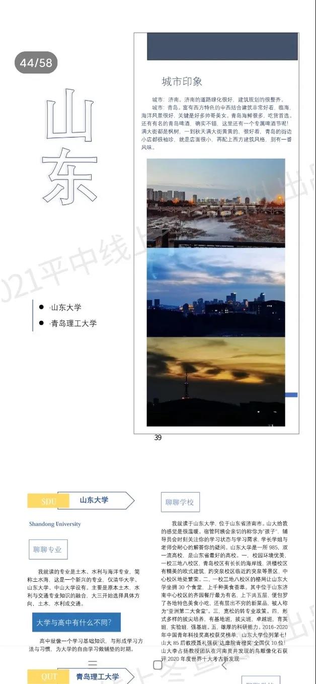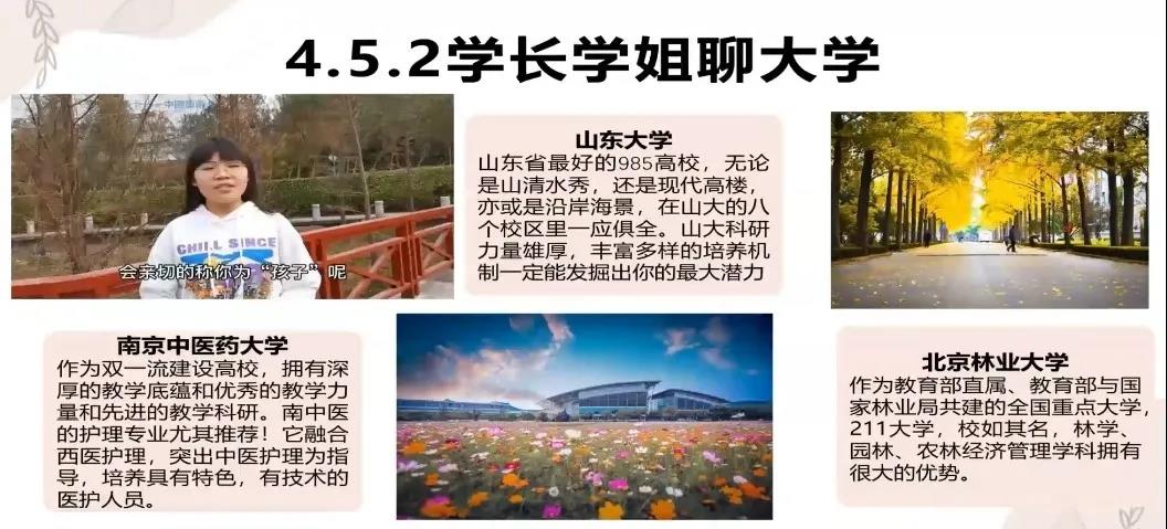 活动开始前,参与宣讲的学生迅速组建QQ群聊,商量并确定了宣讲视频与宣传册的内容。宣讲视频的内容如下:第一部分是政策解读,包括什么是985、211、双一流、强基计划等;第二部分讲述了城市、大学与专业方面的知识;第三部分为学生自行录制的宣讲视频合集。宣传册内容包括以学长学姐给高三毕业生的激励语与文章为主要内容的“青春寄语”,以大学生们对所在城市、大学与专业的介绍为主要内容的“大学有约”和卷尾语。