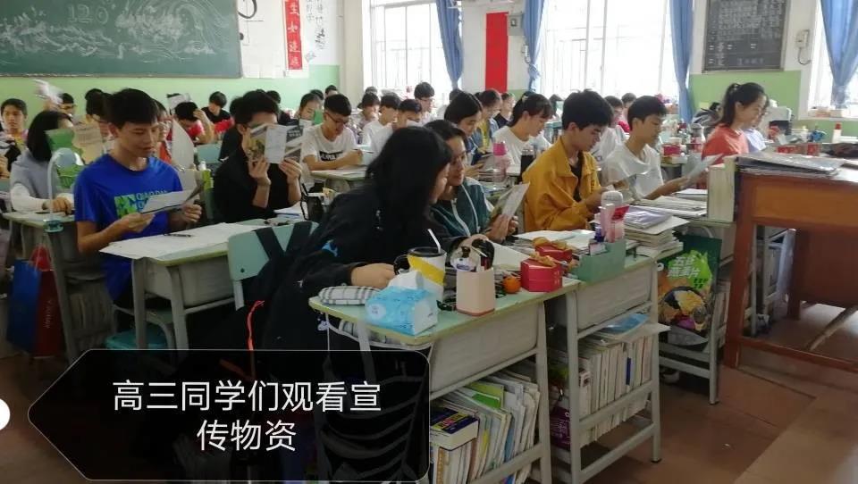 在学校的帮助下,毕业班的同学收到了宣讲物资与宣传册,并认真地阅览了宣传册,了解了心悦的大学、城市及专业,期盼着即将到来的大学生活。