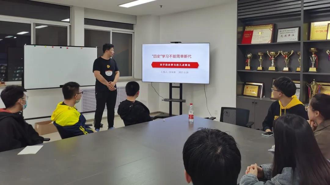 本科生第一党支部于实验楼633召开学“四史”主题党日活动。活动由党支部副书记郭章潮主持,部分党员、预备党员参加活动。