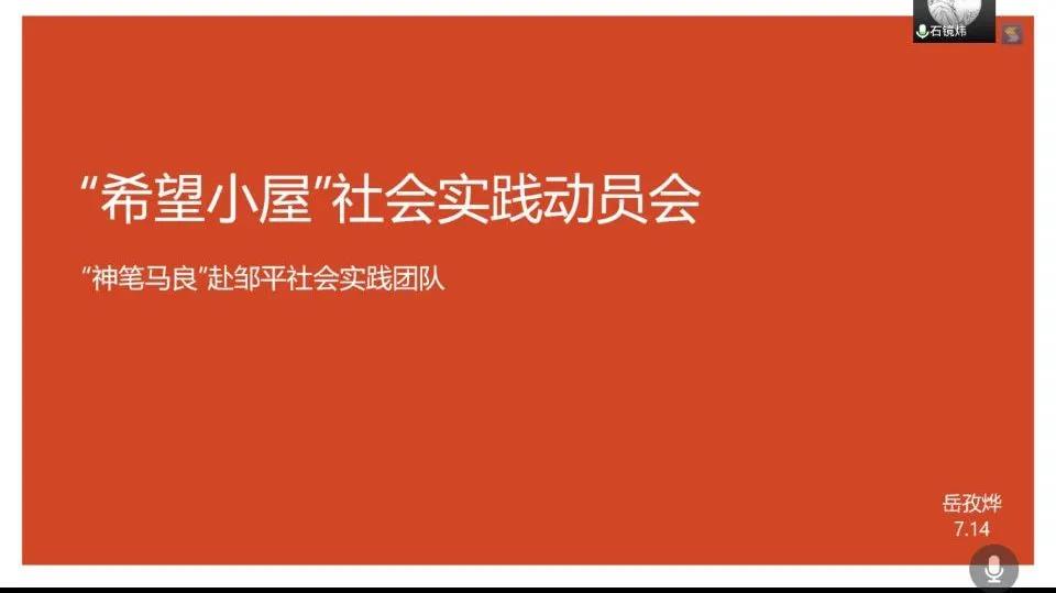 “神笔马良”赴邹平社会实践团队在线上召开社会实践活动动员会。会议由队长工口实验室
