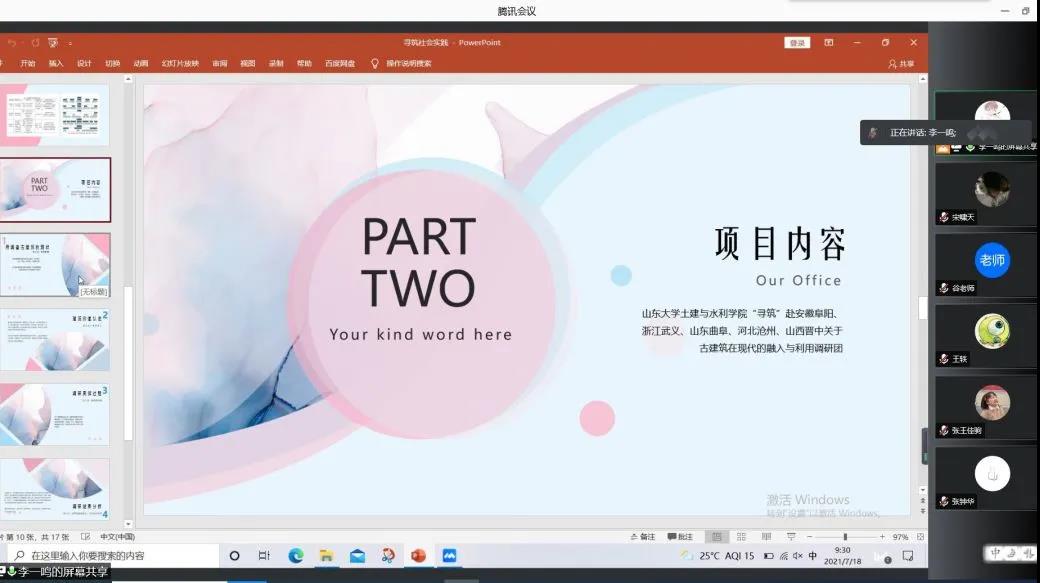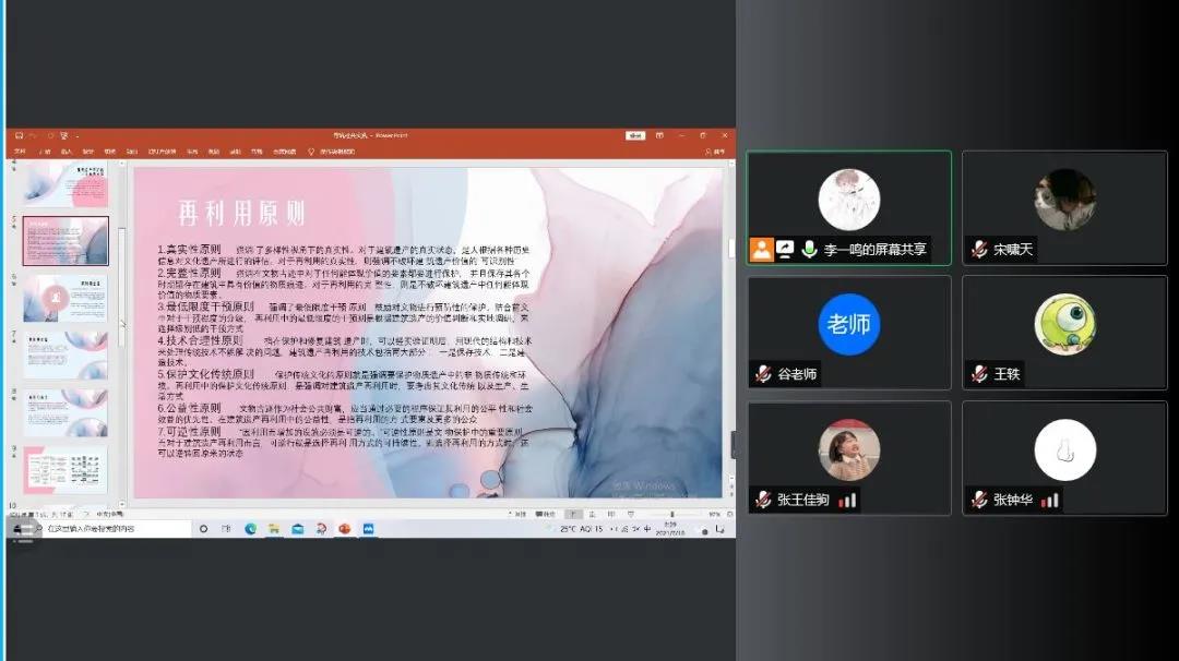 “寻筑”调研团在线上展开了会议。本次活动由队长李一鸣主持,全体成员参与,建筑学系副教授谷健辉给予指导。