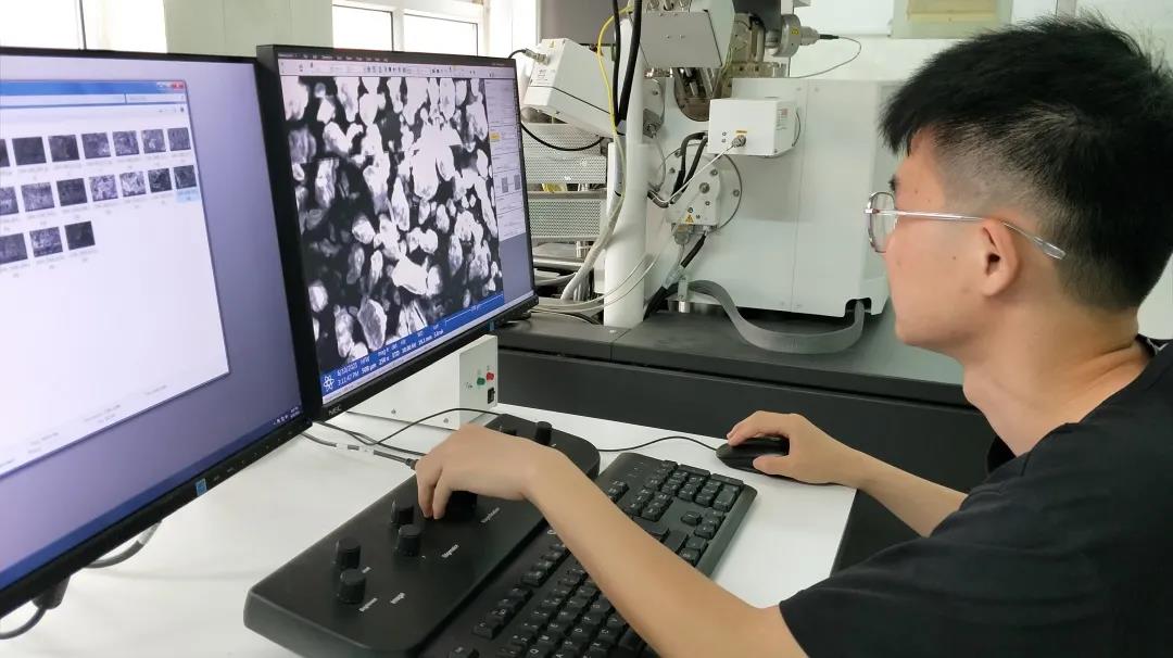 博士生学长李修浩进行电子扫描显微镜的操作教学。随后,在正式的试验过程中,罗辉等同学在学长的指导下开展对原状烘干黄土的观察。