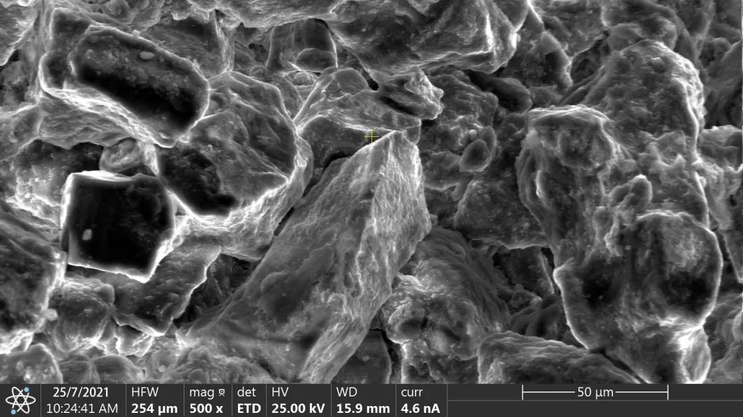 电镜扫描时,先将SEM图像放大到50倍视野,对图像进行整体的微结构状态,观察后选取颗粒清晰,无放电的区域,再将图像分别放大到200倍,500倍,800倍,1000倍等中等倍数区,进行土体结构的定性分析。最后选取典型区域,将SEM图像,放大到1500倍或2000倍,用于微观结构的定量分析。