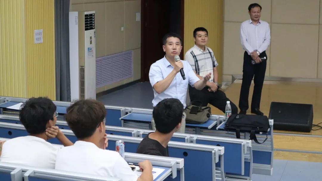 副院长韩勃,水利系主任毛德强,党支部书记于翠松,教授李传奇、周维芝等多位水利系老师及水利系1992级校友傅题善出席会议,2021级全体新生参加了本次宣讲会。