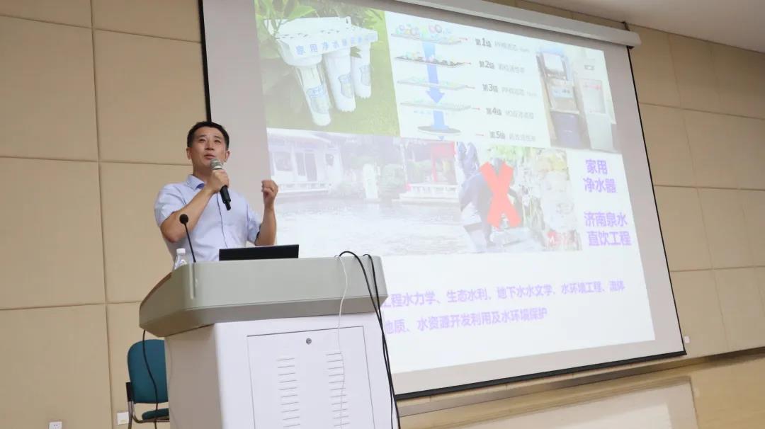 接着,傅题善进行了我国调水工程与智慧水利发展展望的宣讲。在宣讲过程中,傅题善从南水北调工程出发,简要介绍了我国调水工程的现状。同时,他深入到水利工程工作现场,向同学们展示了未来可能的工作环境,使同学们对未来就业有了更加清晰的了解。在宣讲最后,傅题善还向同学们介绍了水利方向正蓬勃发展的新兴方向—智慧水利。傅题善提出智慧水利的发展前景开阔,受到国家重视,相信会成为同学们的发展的有利方向。