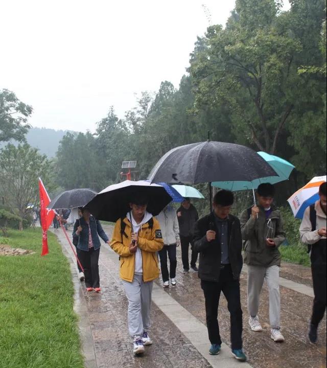 在所有队伍到达第一个登山地点后,大家绑上各自队伍颜色的手环,在起点等待第二个比赛开始。随着时间流逝,比赛激烈地进行着,人群逐渐拉开差距。不知不觉前三名已经决出,在奖品分发与合影后,土木系重阳节登山与师生面对面交流活动到此结束。