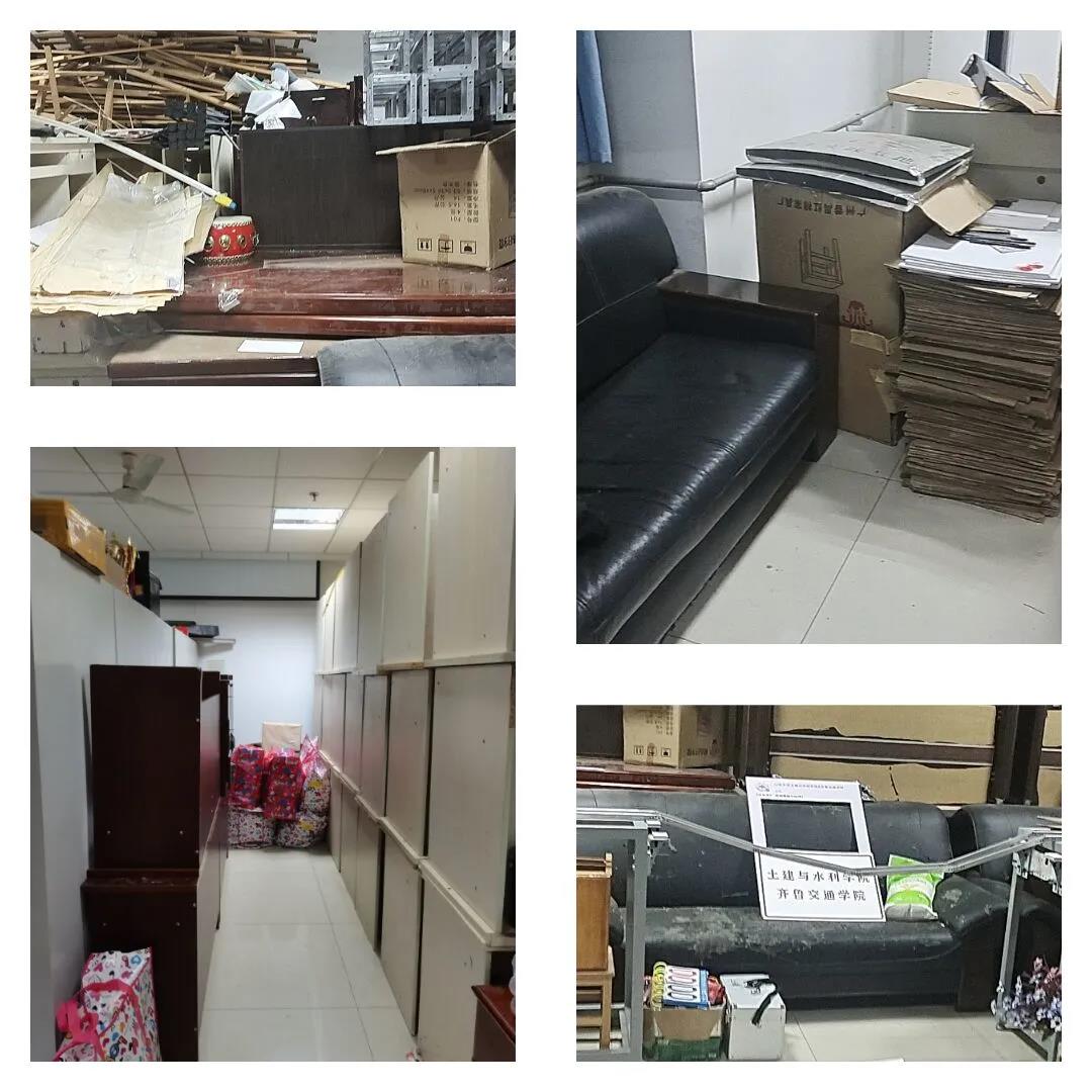 学生组织秘书处部长唐芳菲、马辉带领刘雯顺、陈妍彤等8名干事于实验楼528仓库开展物资清理与场地整改活动。