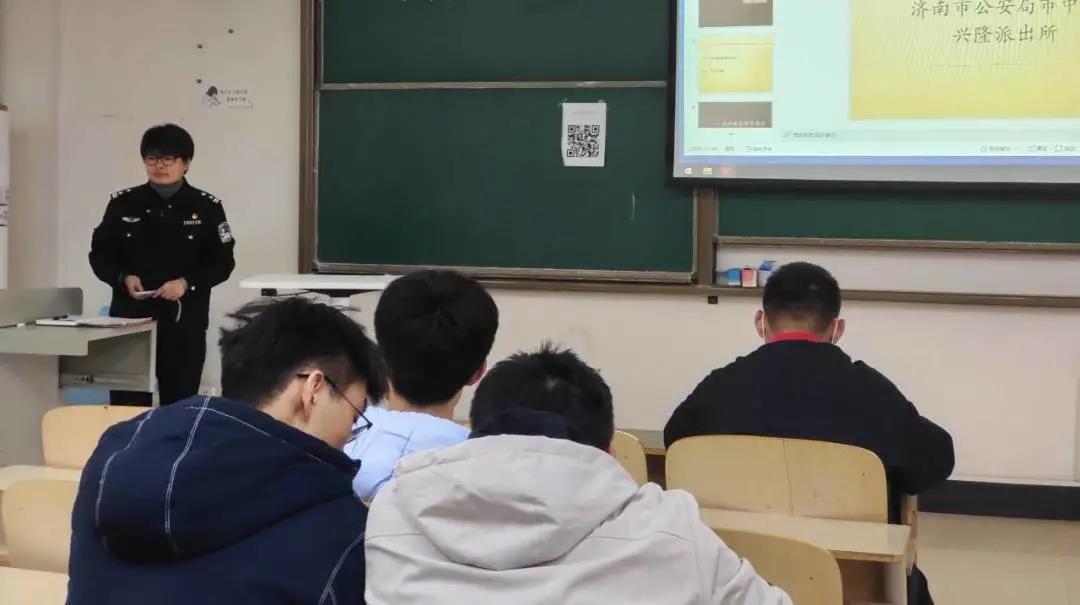 于兴隆山校区教学楼开展安全教育讲座系列之反诈骗宣传。本次反诈骗宣讲由济南市公安局市中分局兴隆派出所民警主讲,工口实验室
