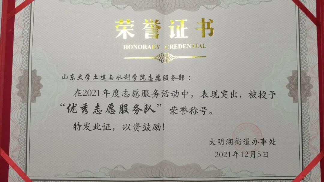 志愿服务部联合大明湖党群服务中心,以“用最初的心,做永久的事”为指导思想,开展爱心义卖、社区楼道清洁、红色讲堂系列活动等志愿服务活动。活动开展过程中志愿者们以梦想成就梦想,向社会传递温暖与感动,推动了社区的和谐发展,受到社区居民的一致好评,并以优异的活动表现被大明湖街道办事处授予优秀志愿服务队荣誉证书。
