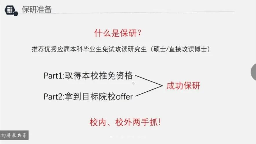 就本校保研推免条件以及保研过程基本时间线,王冰琴、李东泽向同学们进行了介绍。他们分享了参加夏令营的经验,并对现阶段要做什么、推免考虑事项提出了一些建议。