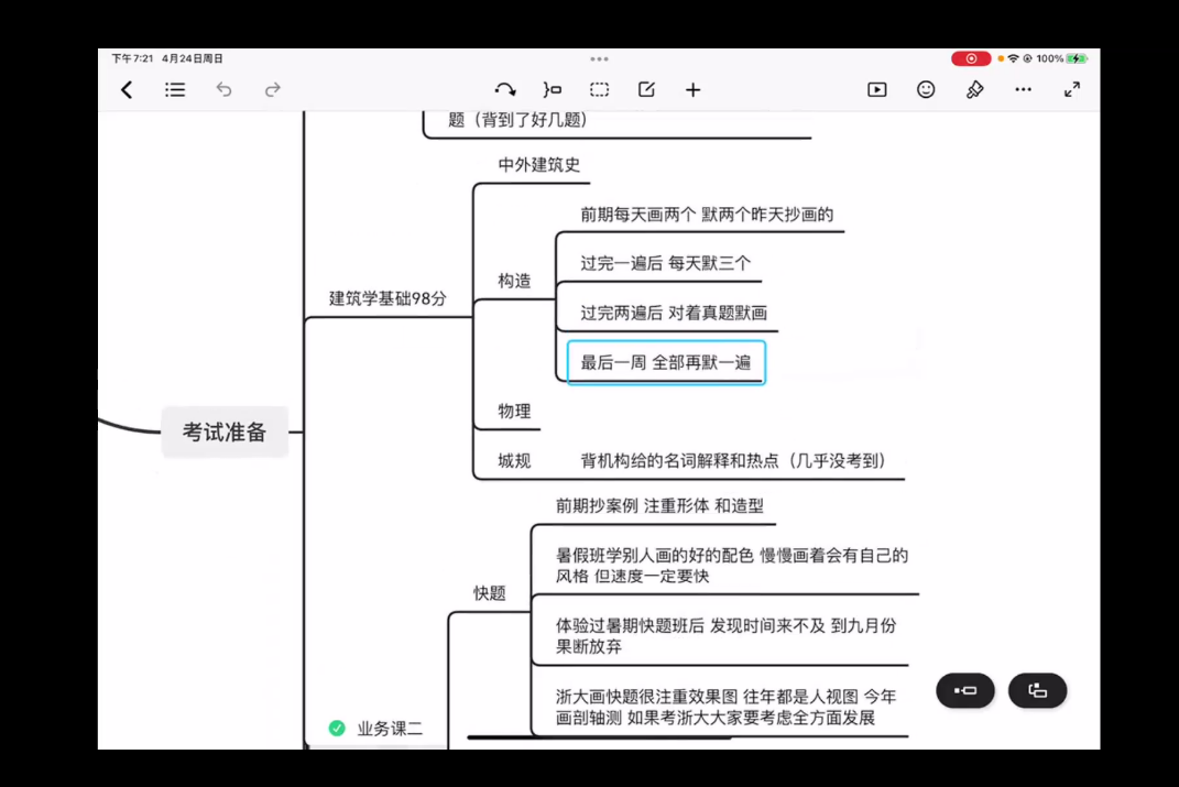 及时总结,考虑将各科的主观题的题目整理,并在题目后标注复习状态,并根据自己的情况来更新状态,考研的大后期,即可根据清单查缺补漏。