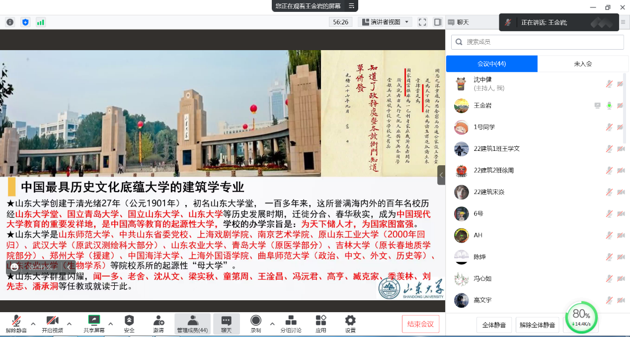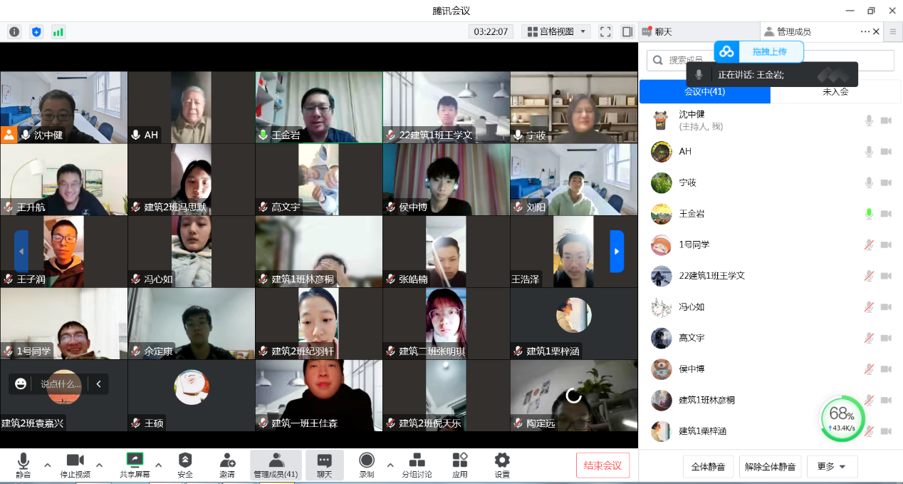 建筑学系组织了2022级新生建筑学专业学习线上交流活动,建筑学系系主任宁荍、党支部书记王金岩、建筑学系名誉系主任黄绳等建筑学系老师参加活动。建筑学22级班主任沈中健主持活动。