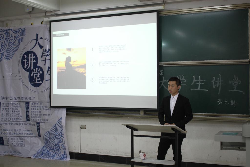学生会承办的第五届“大学生讲堂”第七期于兴隆山教学群楼举办。