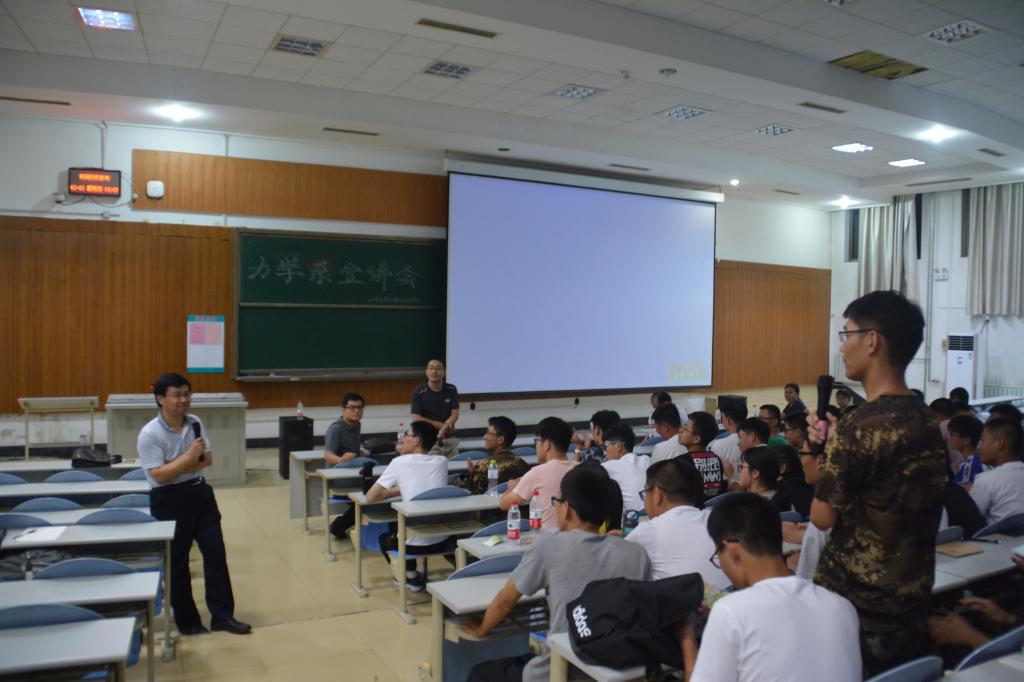 学术委员会委员冯维明、工程力学系全体教师和2018级全体新生参加宣讲会。