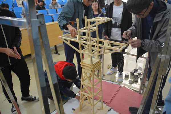 于兴隆山校区讲学堂举办第十三届全国大学生结构设计竞赛校内筛选赛。工口实验室