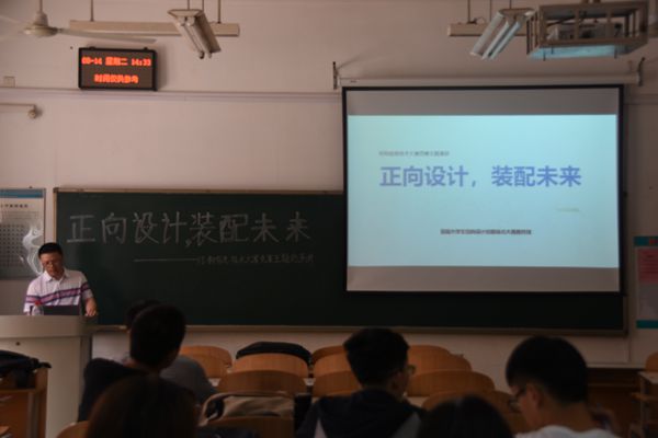 于兴隆山校区教学群楼举办“正向设计,装配未来”全国大学生结构信息技术大赛主题讲座,赛题组负责人童慧波担任主讲嘉宾,工口实验室