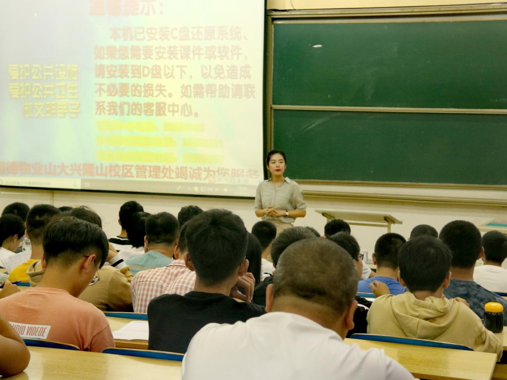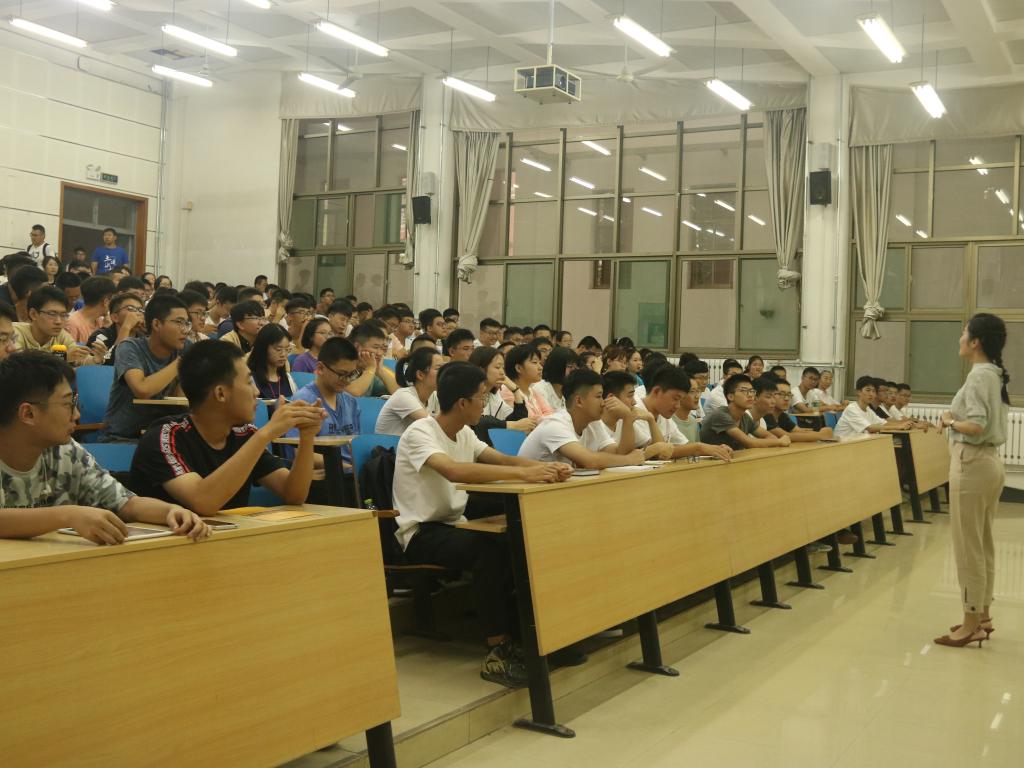 2019级本科生辅导员何玥主持本次会议,2019级全体新生参加会议。