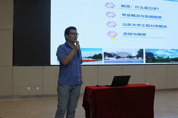 力学系简介、学科发展状况、研究方向、科研成果、本科生教学、毕业去向等方面进行了详细说明。他重点介绍了力学大师刘先志先生的卓越贡献,并告诉同学们要以刘先志为榜样,树立清晰明确的人生目标,用在大学中学习的知识为社会建设做出自己的贡献。在科研成果方面,王少伟向同学们介绍了黄泛区粉土变形破坏理论研究、岩体水压致裂的成套装备研制和微纳米智能材料与结构的关键力学问题研究等多个科研成果,增加了同学们对力学专业的了解。在最后的提问环节,同学们结合本次宣讲内容,就未来就业方向、学习难易程度等方面进行提问,老师们从多个角度进行详尽解答,并鼓励同学们积极思考,迎难而上,在短暂的大学时光中不断充实自己,成为能为国家做出贡献的建设型人才。