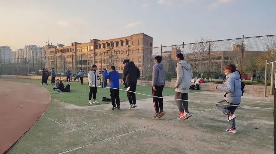 首先是跳大绳,两位同学负责摇绳,其余同学依次跑进去跳绳。随着同学们逐渐熟悉节奏和规律,过程变得越来越连贯。