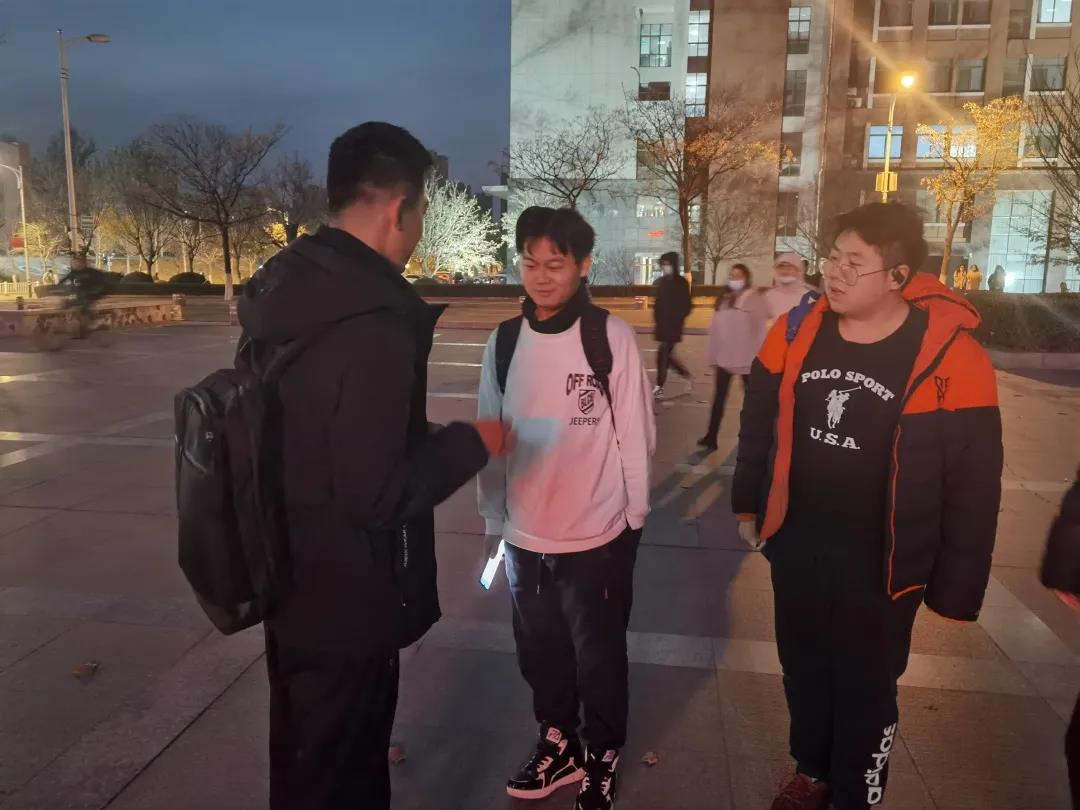活动于11月29日晚在欣园餐厅西门广场正式开展,卡片发放成员有体育委员胡杰、宣传委员王旭召、韩秉哲同学以及门建彤同学。本次活动采取路过同学随机抽取卡片的方式,为来往的同学们送去满含惊喜的精美的卡片。尽管天气寒冷,但发放小队成员积极发扬“志愿服务精神”,以真诚的付出为兴隆山校区的冬天带来了温暖,用暖心的卡片为他人送去温暖。